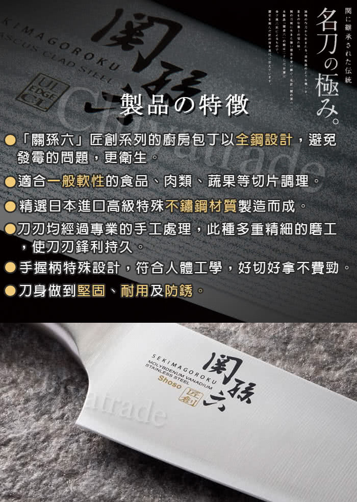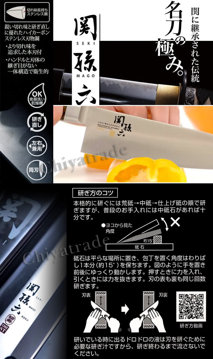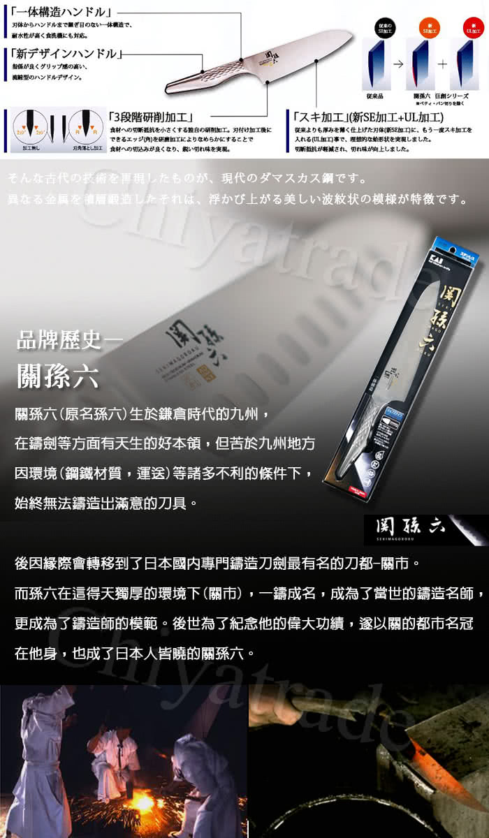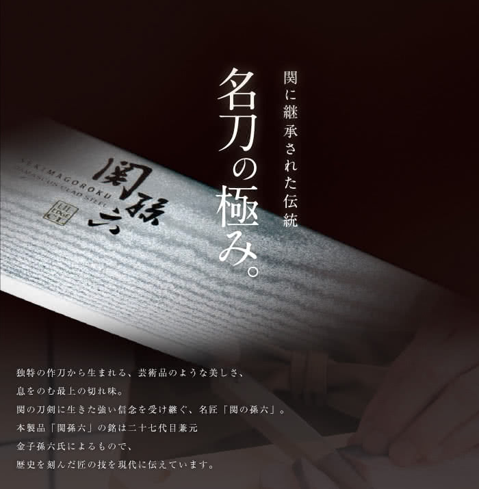 秉持鎌倉時代著名刀匠—關孫六的製刀精神,作工精細並具獨特藝術性,其刀面鋒利度更是上品之選。
