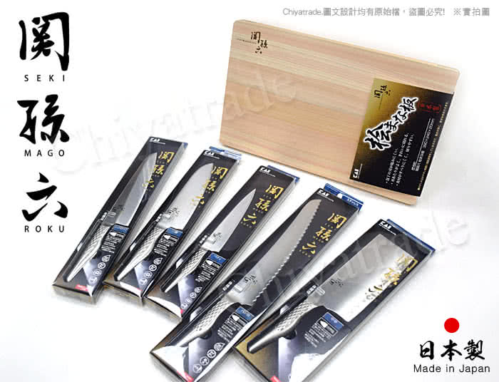 貝印另一高級系列「關孫六」,「關孫六」的鍛造者名為二十七帶名目兼元金子孫六氏,他所鑄造的刀劍,有「最上大業物」(日本刀劍史上最高榮譽)的美譽,為日本名刀劍之一,而該系列就是傳承了這位名匠對刀藝的美學與執著,將鑄造名刀劍的精神運用在製作家用刀具上。