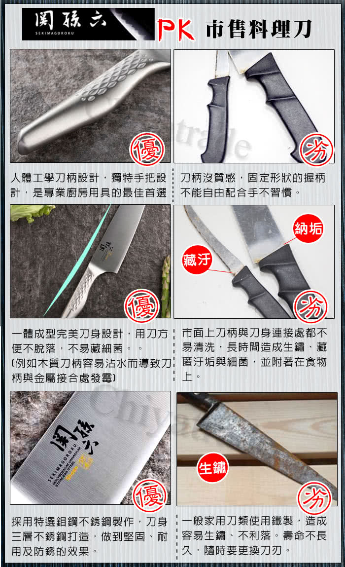 所以我個人對【日本貝印KAI】日本製-匠創名刀關孫六 一體成型不鏽鋼刀(中華菜刀16.5cm+檜木砧板)的評比如下